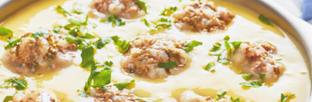 ground buffalo meat rolled in herbs & spiced wrapped all together in a thick ball of bread. served in threes with a tangy yogurt sauce.